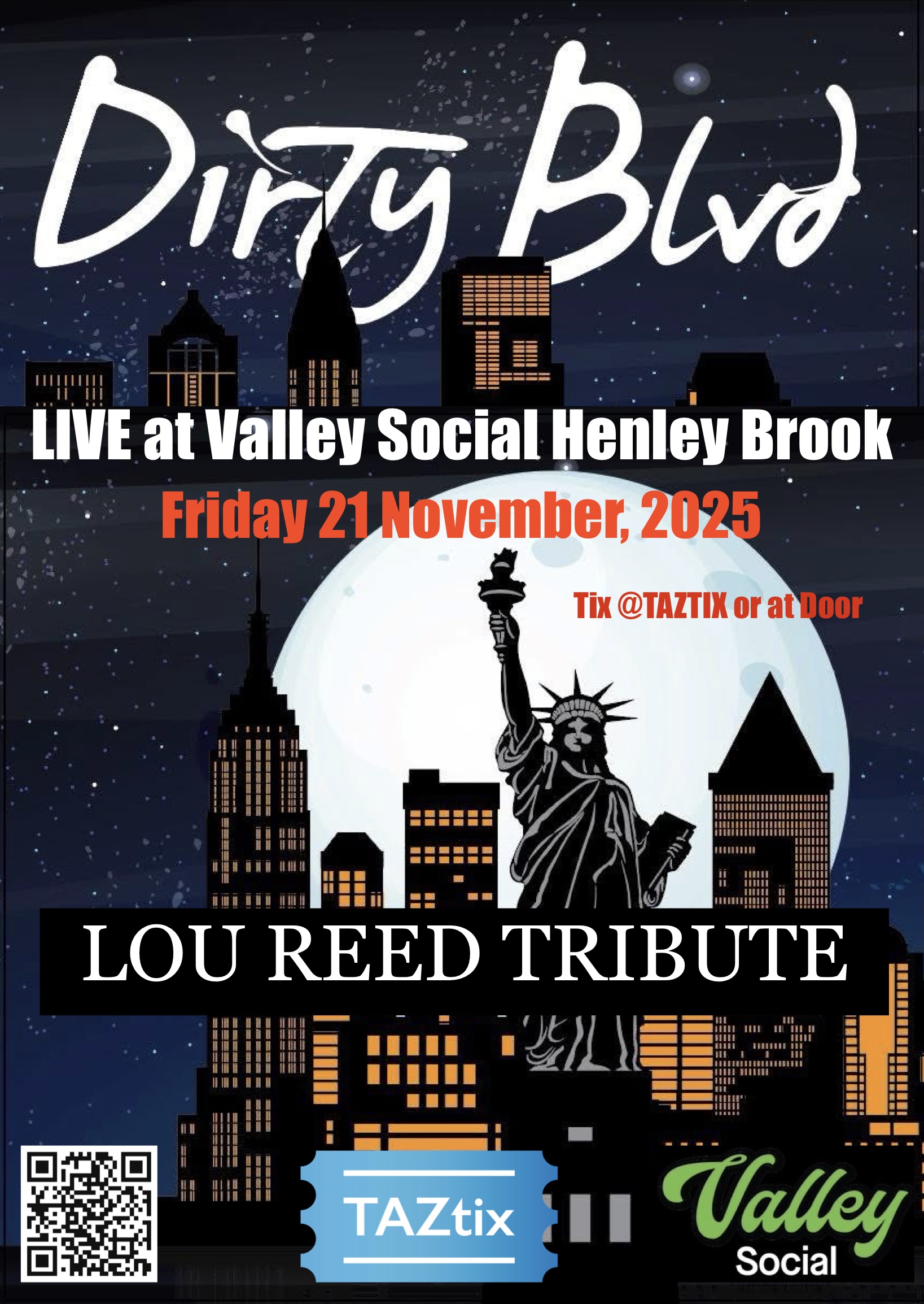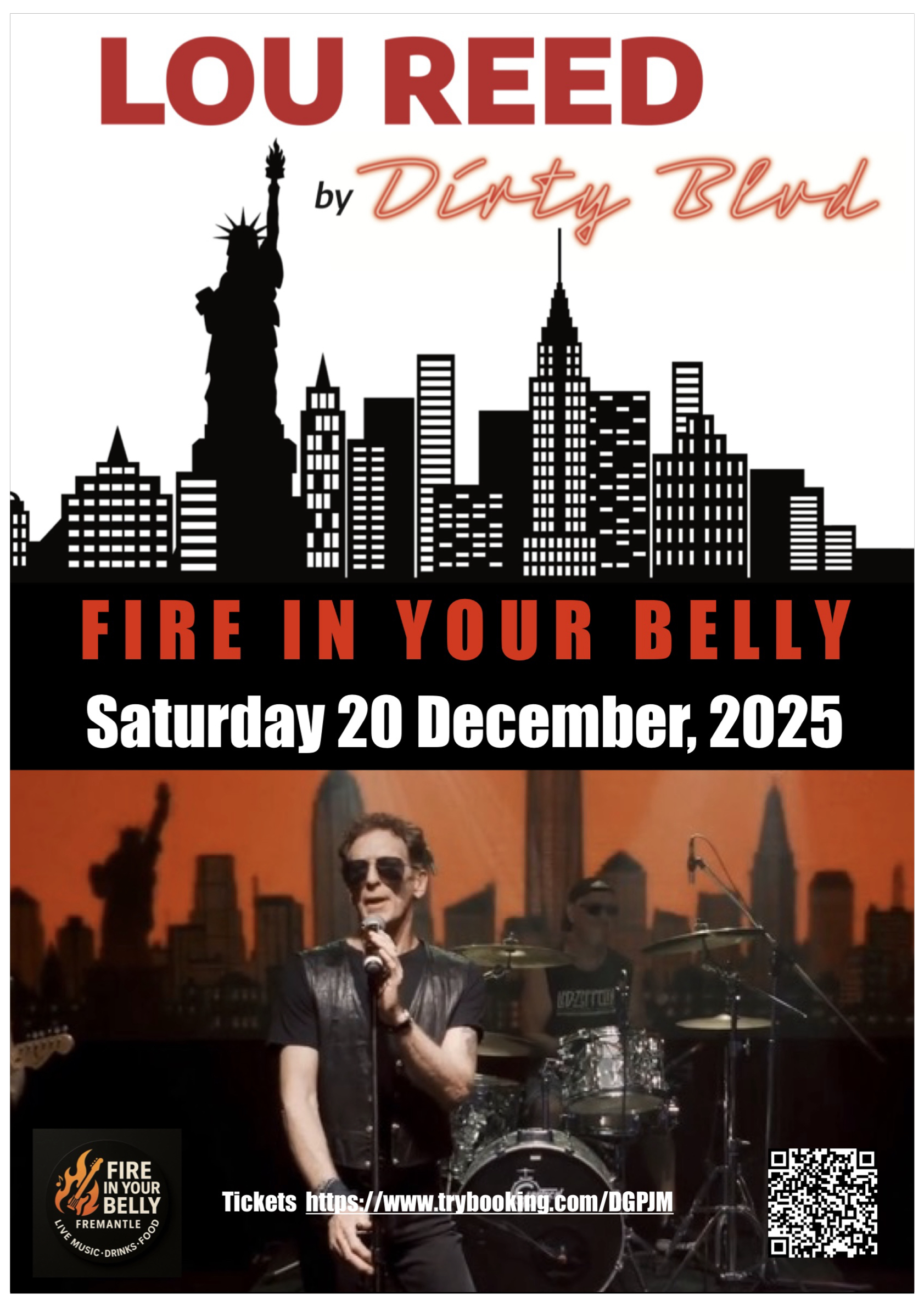 DIRTY BLVD – LOU REED Tribute – Saturday 20th December – Fire in Your Belly, Fremantle